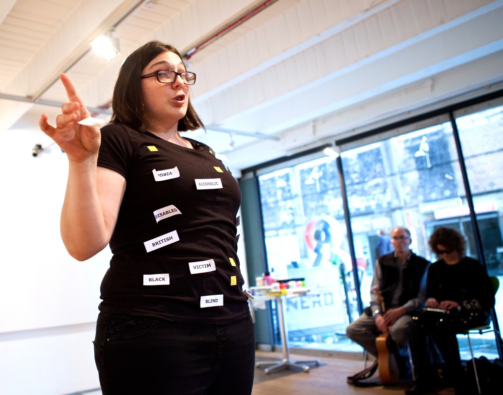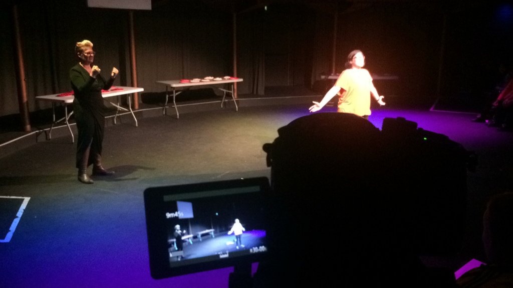 On one of the days we rehearsed on a stage connected to a university. The small theatre space could have held up to 200 audience members. We rehearsed and worked out how to tell people’s individual stories in different ways, and how to use certain objects as metaphors.
