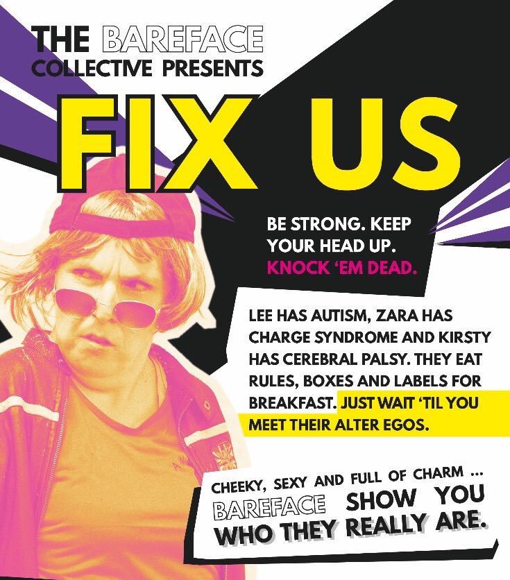 Fix Us is an autobiographical show where three people with different disabilities use their alter-egos to find their confidence. With their own humor they deliver thought provoking stories, and take you on their journey of mischief and mayhem.